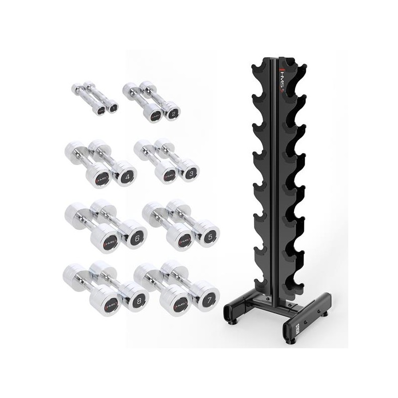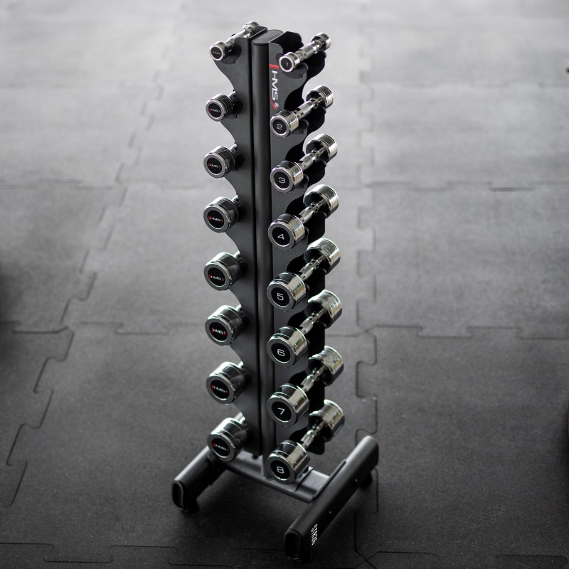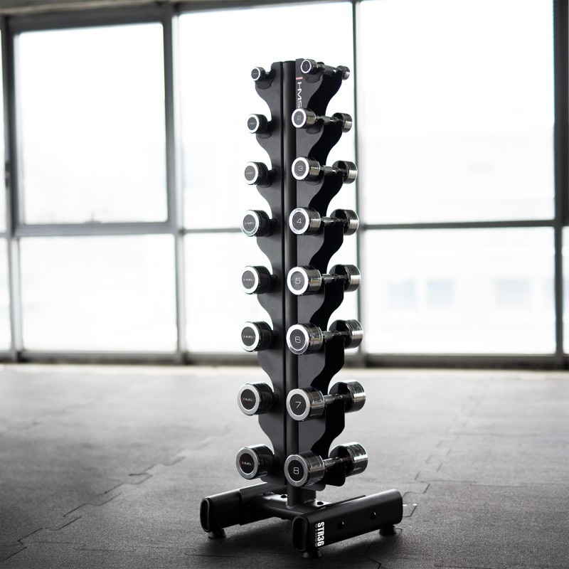 Setul de gantere CHD HMS împreună cu suportul STR36 este soluția perfectă pentru cei care caută echipamente de antrenament elegante, funcționale și compacte. Setul include gantere care variază de la 1 la 8 kg, vândute în perechi pentru a se potrivi perfect cu suportul vertical STR36.