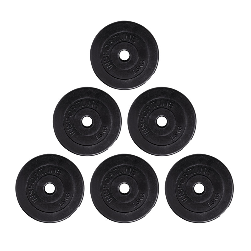 • 6 x 2,5 kg discuri de greutate din ciment imbracate in plastic, cu diametrul de 22 cm
