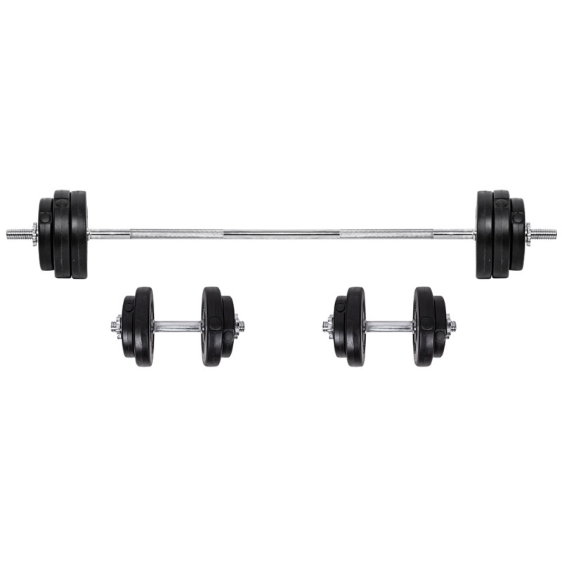 Barele sunt confectionate din metal de calitate, cu filete la ambele capete, permitandu-va sa fixati in siguranta discurile de greutate in loc cu sigurantele cu filet. Deoarece este reglabil, acest set ofera posibilitatea de efectuare de diferite exercitii fizice si prin urmare, este potrivit pentru uz casnic.