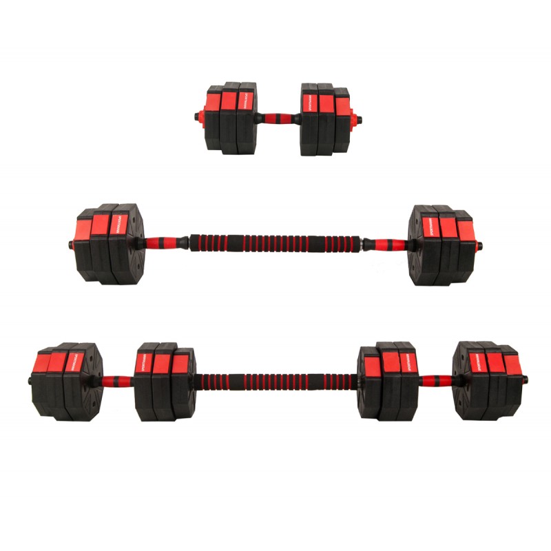 Set gantere ce se poate uni astfel incat sa formeze o haltera, greutate 30 kg, materiale durabile.