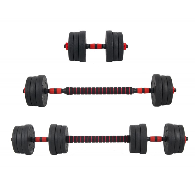 Set gantere ce se poate uni astfel incat sa formeze o haltera, greutate 20 kg, materiale durabile.