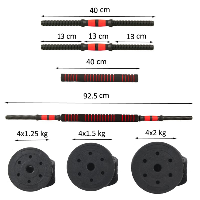 Datorita unei bare de legatura speciale, obtinem posibilitatea de a uni doua bare scurte, formand una lunga. Aceasta solutie inovatoare extinde semnificativ gama de posibilitati de antrenament. Obtinem o haltera, cu care putem face exercitii imposibil sau incomod de realizat cu ganterele. Alegand un produs, obtineti 2 modalitati de utilizare.