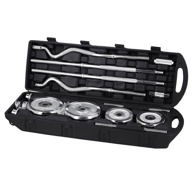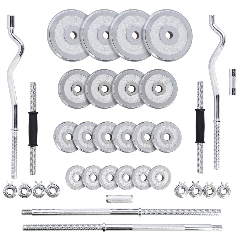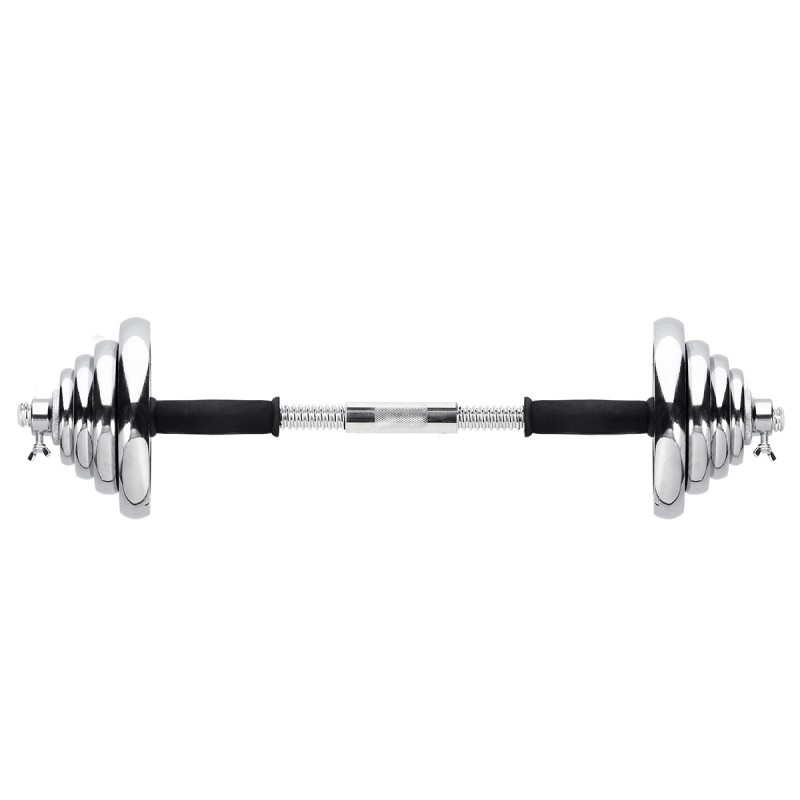 Haltera cu sarcina interschimbabila este un clasic si o necesitate pentru fiecare sala de gimnastica de acasa. In combinatie cu ganterele, ofera nenumarate posibilitati de exercitii.