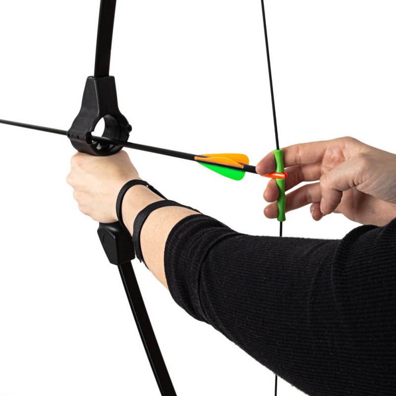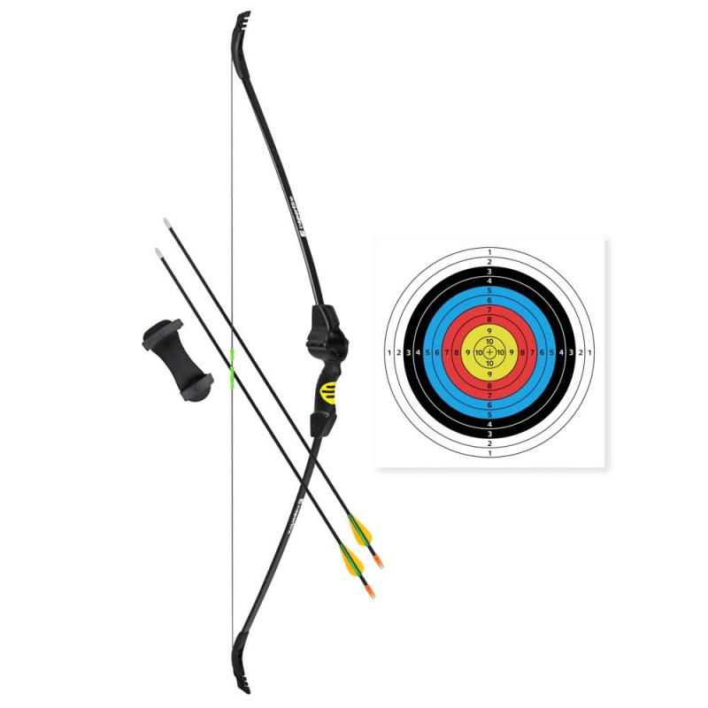 Un set de tir cu arcul format dintr-un arc recurve sigur, 2 săgeți cu vârfuri din oțel și o protecție pentru braț, care vă va distra atât acasă, cât și în grădină.