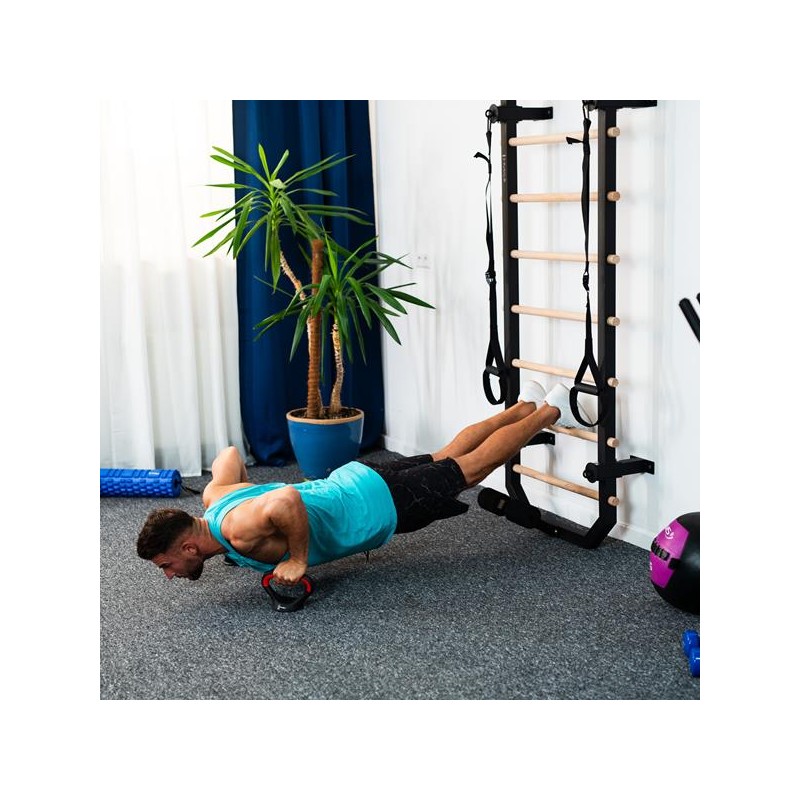 Scara gimnastică HMS nu este doar un echipament excelent pentru exerciții de forță și întindere, ci vine și cu un set de accesorii care îți măresc opțiunile de antrenament. Spalierul include corzi și benzi de rezistență pentru a antrena diferite părți ale mușchilor. Corzile sunt realizate dintr-un material durabil care oferă siguranță și confort în timpul exercițiilor. Acestea pot fi reglate ca lungime. Benzile de rezistență sunt elastice de calitate care, atunci când sunt întinse, influențează intensitatea exercițiului. Atât benzile, cât și elasticele sunt ușoare și ușor de depozitat.