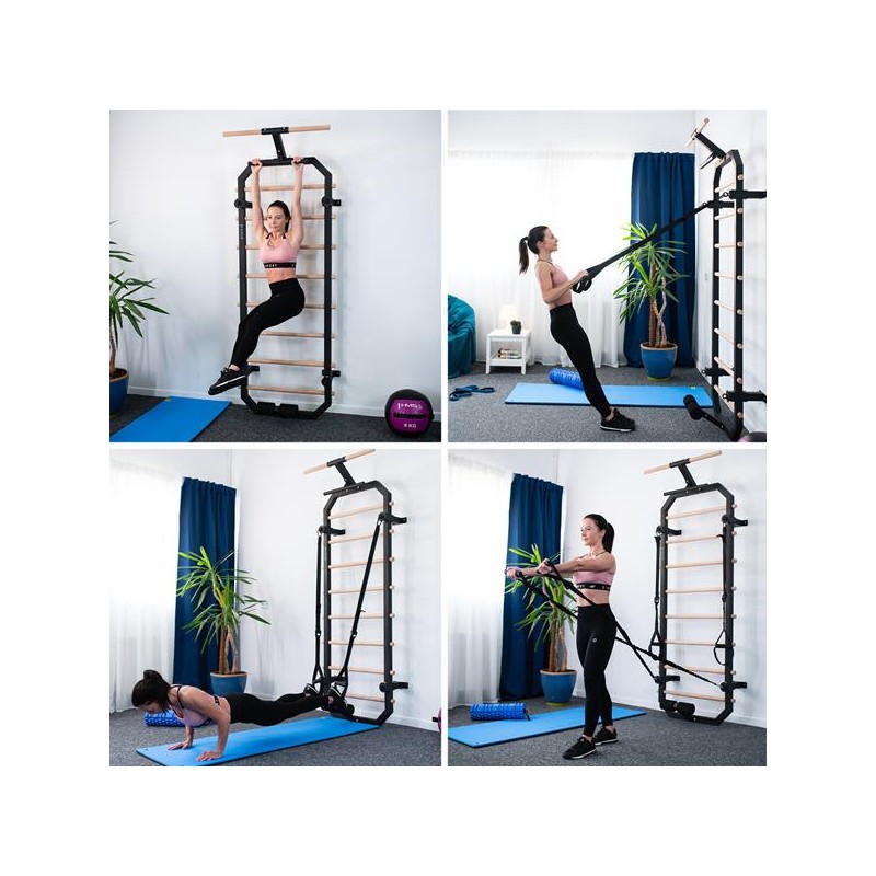 Spalierul DW2708 permite efectuarea unei varietăți de exerciții pentru întregul corp, cum ar fi tracțiuni, ridicări ale picioarelor, rotații ale trunchiului și altele. Acest tip de antrenament crește amplitudinea mișcărilor articulațiilor și previne accidentările. Numărul exercițiilor este aproape nelimitat, deoarece puteti folosi benzile pentru antrenament. Spalierul DW2708 este ușor de montat și demontat. Este o metodă excelentă de a-ți îmbunătăți condiția fizică, forța, flexibilitatea și sănătatea în confortul propriei case.