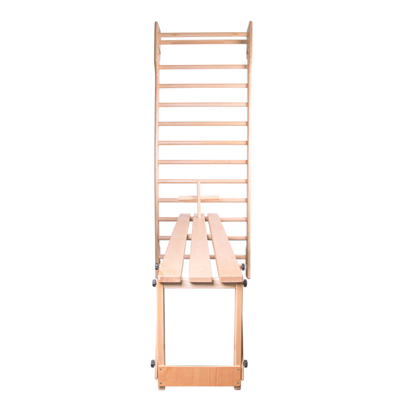 Banca pentru Bare perete inSPORTline Dremar 200 x 36 cm este un echipament de exercițiu excelent pentru orice bară de perete cu o lățime de cel puțin 40 cm. Este confecționată din lemn de fag de calitate, ușor flexibil, dar foarte ferm în același timp. Banca Dremar este alcătuită din trei părți. Partea principală este suprafața de exercițiu în sine, de 200 cm lungime și 36 cm lățime, realizată din trei trepte. A doua parte este piciorul de sprijin care poate fi utilizat pentru a regla înălțimea băncii. Există noduri de reglare care vor fixa piciorul într-o poziție verticală, atunci când banca este susținută de picior. Prin plierea piciorului de sprijin, veți înclina banca. A treia parte a băncii este o extensie pentru abdomene. Are suporturi pentru picioare pentru a menține picioarele în loc în timp ce faceți exerciții fizice. Suporturile picioarelor sunt acoperite de spumă moale din PVC și pot fi reglate la două înălțimi. Banca de spalier Dremar vă permite să efectuați o varietate largă de exerciții, începând cu abdomenele menționate anterior, la flotări inverse pentru triceps și sărituri pe bancă. Puteți folosi chiar și gantere, cu condiția ca greutatea totală să nu depășească 140 kg.