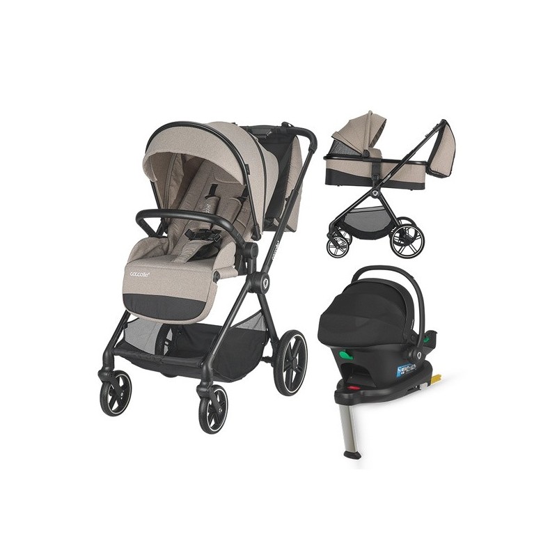 Un pachet complet pentru părinții care vor plimbări confortabile și drumuri sigure cu mașina, încă din primele zile: cărucior 2in1 (landou + unitate sport) + scoică auto i-Size + bază Isofix i-Size.