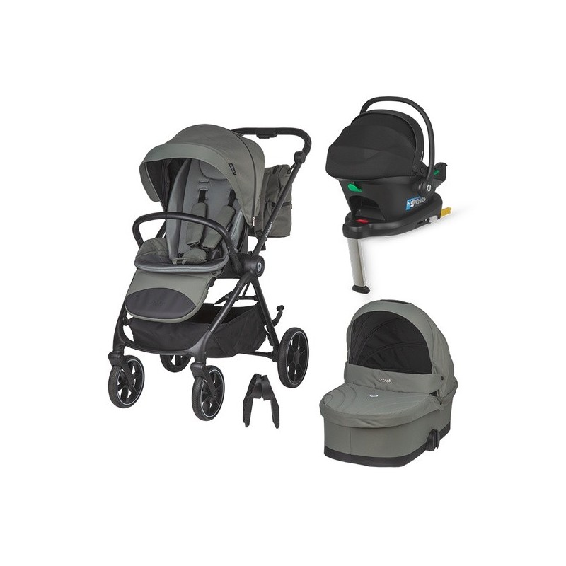 Un travel system complet, gândit pentru părinții care vor să treacă ușor de la plimbare la mașină (și invers), fără compromis la capitolul confort, stil și siguranță: cărucior 2in1 premium + scoică i-Size + bază Isofix i-Size.