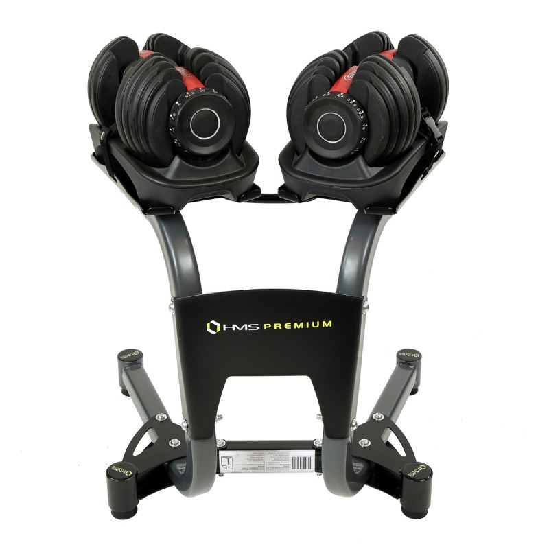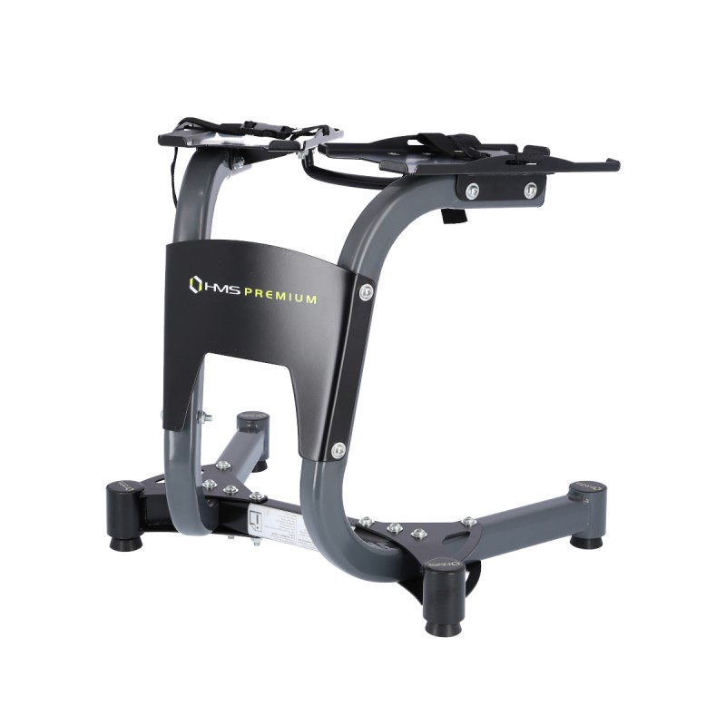 STR10 HMS PREMIUM este un suport din oțel pentru gantere reglabile.