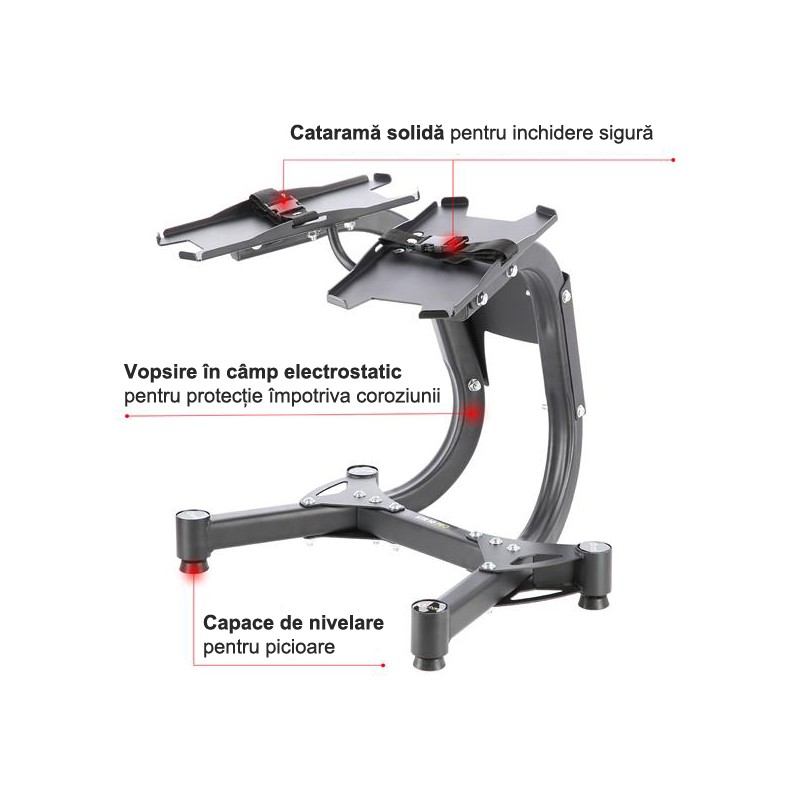 Suport pentru gantere premium, realizat din otel, greutate maxima admisa 100 kg.