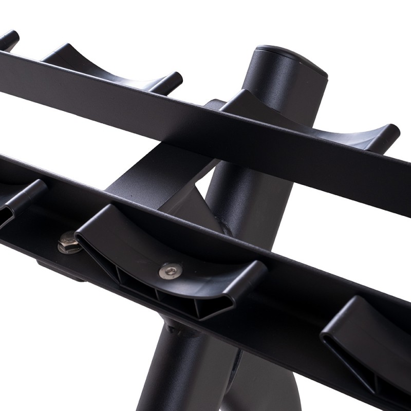 Suport robust, inaltime redusa, capacitate 20 de gantere, ideal pentru toate salile de sport profesionale.