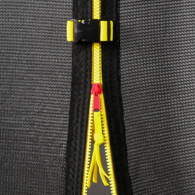 Siguranta este pe primul loc! Trambulina este echipata cu o plasa de siguranta interioara inalta, care protejeaza utilizatorii de caderea din zona de sarituri. Arcurile care tin trambulina sunt ascunse sub o protectie de arcuri in timp ce stalpii plasei sunt captusiti cu tuburi din spuma. Si pentru a face trambulina si mai sigura, intrarea este dotata nu numai cu fermoar, ci si cu catarame.