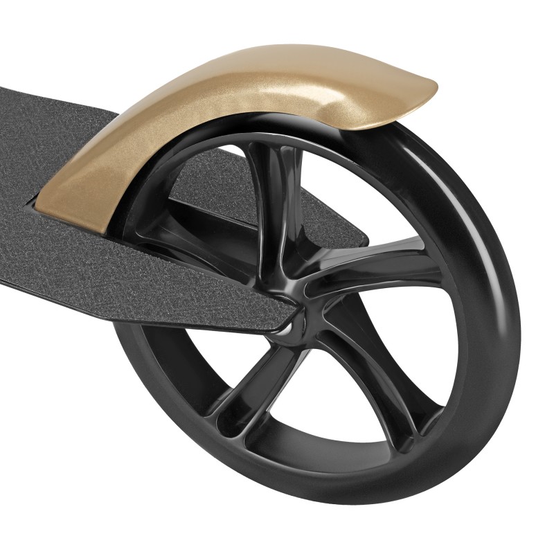 Roțile mari, de 200 mm, realizate din poliuretan (PU) durabil, împreună cu rulmenții de calitate ABEC-7, asigură o rulare lină chiar și pe suprafețe denivelate. Duritatea și flexibilitatea optimă a roților oferă stabilitate și o deplasare dinamică, fie că mergi pe trotuar, sosea asfaltată sau pe pavaj.