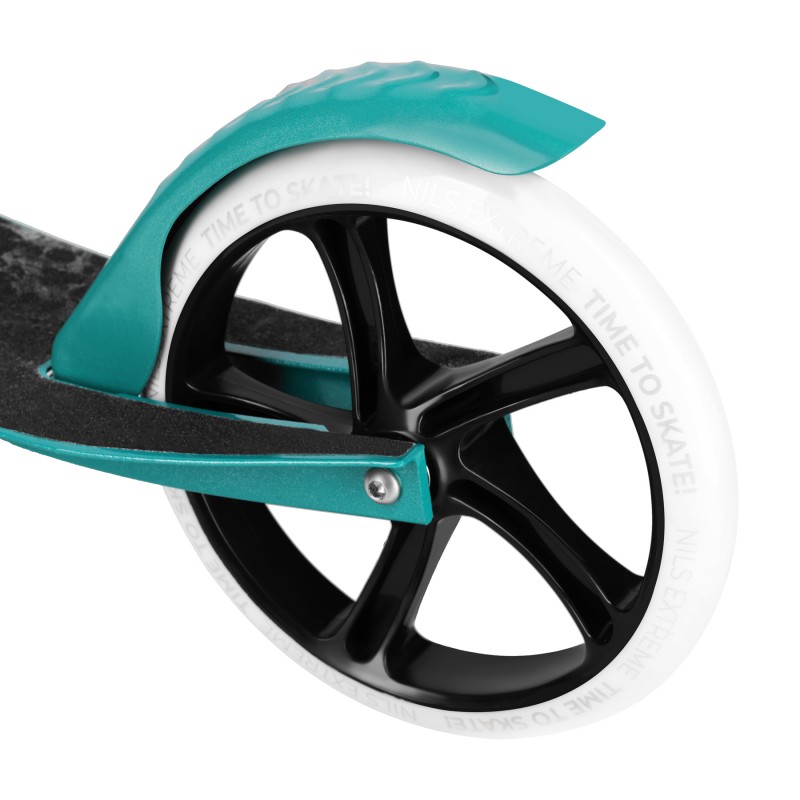 Confortul în timpul mersului este garantat de roțile mari de 20 cm, realizate din poliuretan (PU) durabil, care absorb foarte bine denivelările și oferă stabilitate chiar și la viteze mai mari. Rulmenții de calitate ABEC-9 permit o rulare lină, rapidă și silențioasă, sporind considerabil plăcerea mersului.