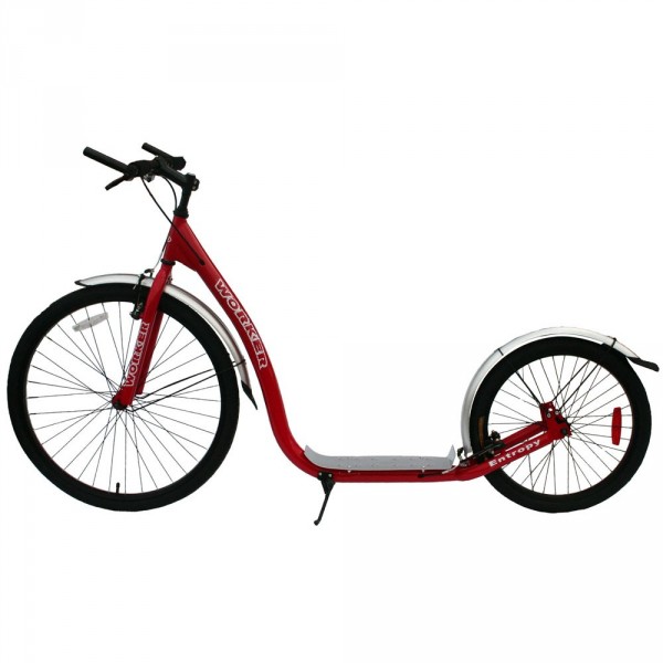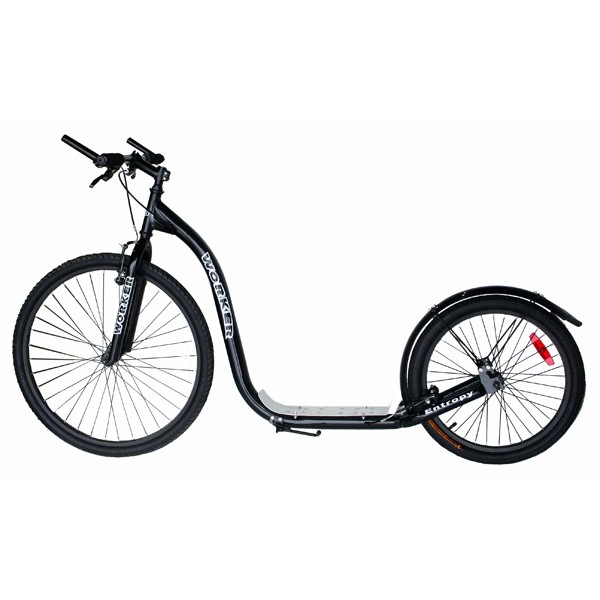 Trotineta WORKER Entropy satisface cele mai înalte standarde de proiectie si siguranţă.. Este o trotineta foarte stabila şi rapida. Echipata pentru viteză, jante de aluminiu si scut pentru rezistenţă minimă. Roata din fata de 26 " iar roata din spate 20" , frana pe fata si pe spate, pentru o franare mult mai eficienta.